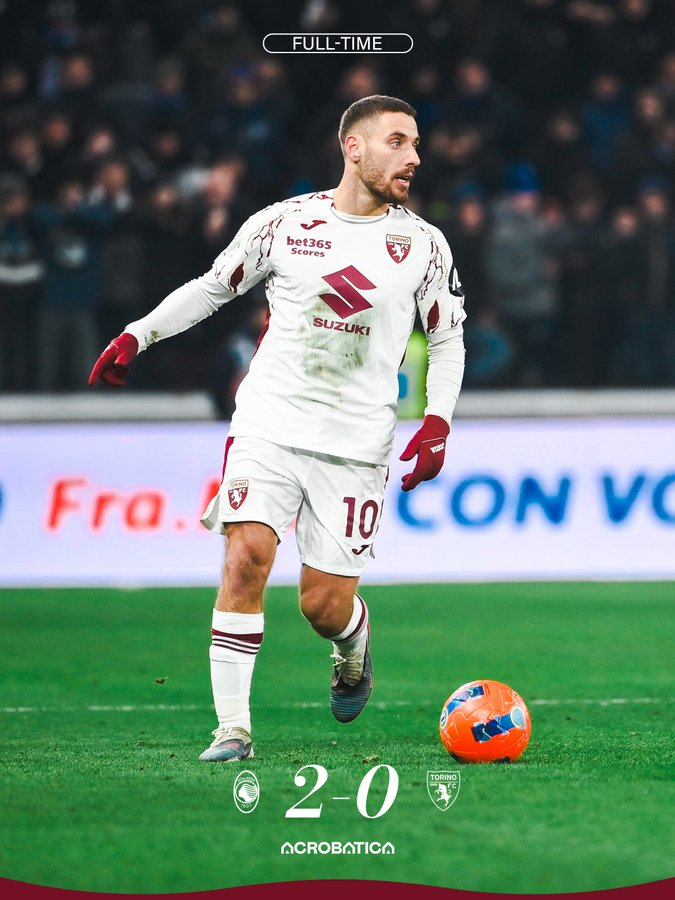 Il Toro scende al 12esimo posto con 23 punti mentre i bergamaschi consolidano il settimo posto con 31 punti.