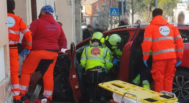 A tutta velocità, si schianta sul muro della scuola di Monterado: l'automobilista dà in escandescenze, grave la passeggera
