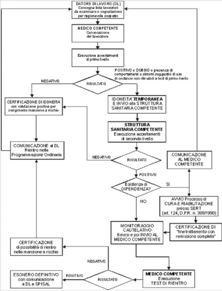- accertamento per ragionevole dubbio: quando sussistano indizi o prove sufficienti di una possibile assunzione di sostanze illecite, su segnalazione del datore di lavoro, o suo delegato, al medico competente;