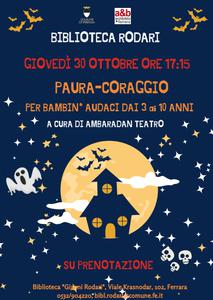 E’ pensato per piccoli spettatori audaci lo spettacolo teatrale dal titolo “Paura-Coraggio” che giovedì 30 ottobre 2025 alle 17:15 andrà in scena alla biblioteca comunale G. Rodari (viale Krasnodar 102 a Ferrara). In attesa di Halloween, i bambini dai 3 ai 10 anni potranno assistere alla rappresentazione a cura di Ambaradan Teatro, per un pomeriggio dalle forti emozioni.