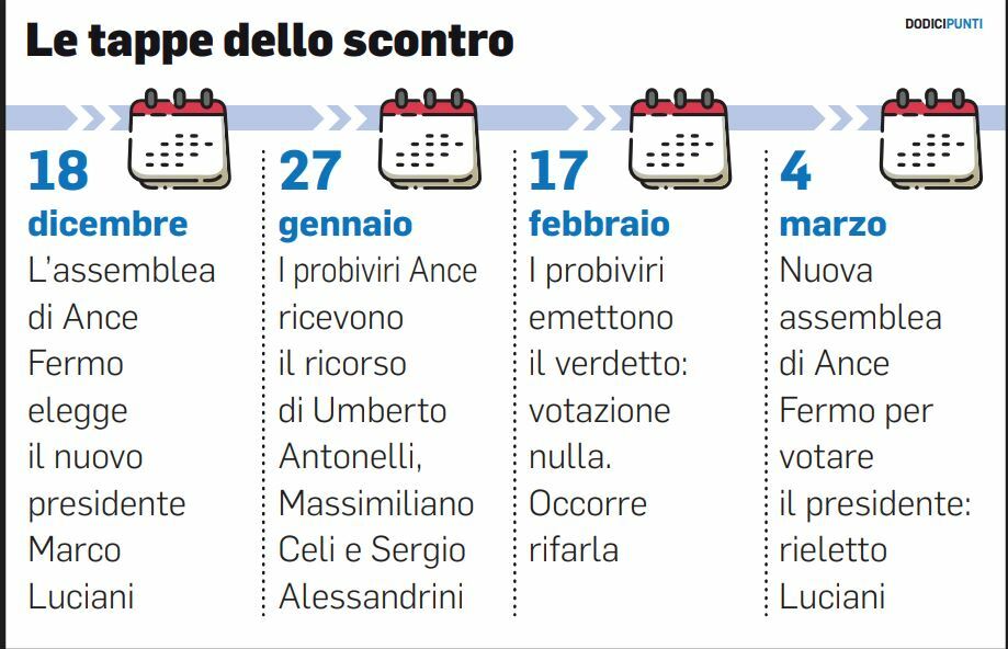 Un ritrovato clima di compattezza respirato in un’assemblea che ha visto una nutrita partecipazione da parte degli imprenditori. Luciani resterà in carica fino a dicembre 2027. Poi ci sarà una verifica del suo operato. Se verrà giudicato insoddisfacente si procederà ad una nuova elezione. Se invece tutto filerà liscio, Luciani avrà altri due anni di mandato. Quanto avvenuto ieri è il lieto fine di una storia iniziata verso la metà di dicembre. Luciani sembrava essere l’unico candidato in corsa per sostituire Massimiliano Celi, giunto a fine mandato. Ma pochi giorni prima della votazione, presenta la sua candidatura, legittima quanto imprevista, anche Umberto Antonelli (azienda Eurobuilding di Servigliano). La situazione comincia a surriscaldarsi. Il 18 dicembre 2025 gli aderenti all’associazione dei costruttori edili, in seno a Confindustria Fermo, si riuniscono per votare e Marco Luciani viene eletto per una manciata di voti. Nemmeno il tempo di insediarsi che lo stesso Antonelli, insieme al past president Celi e a Sergio Alessandrini presentano un ricorso fondato sul fatto che il nuovo presidente, per essere eletto, avrebbe dovuto ottenere la maggioranza assoluta dei consensi. Cosa che, dopo una corretta conta dei voti, non aveva raggiunto.