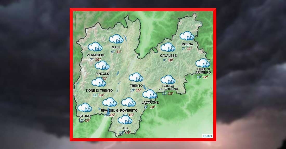 Al tardo pomeriggio e sera è atteso il passaggio di un fronte freddo: le precipitazioni assumeranno anche carattere di rovescio o locale temporale con forti raffiche anche in valle.