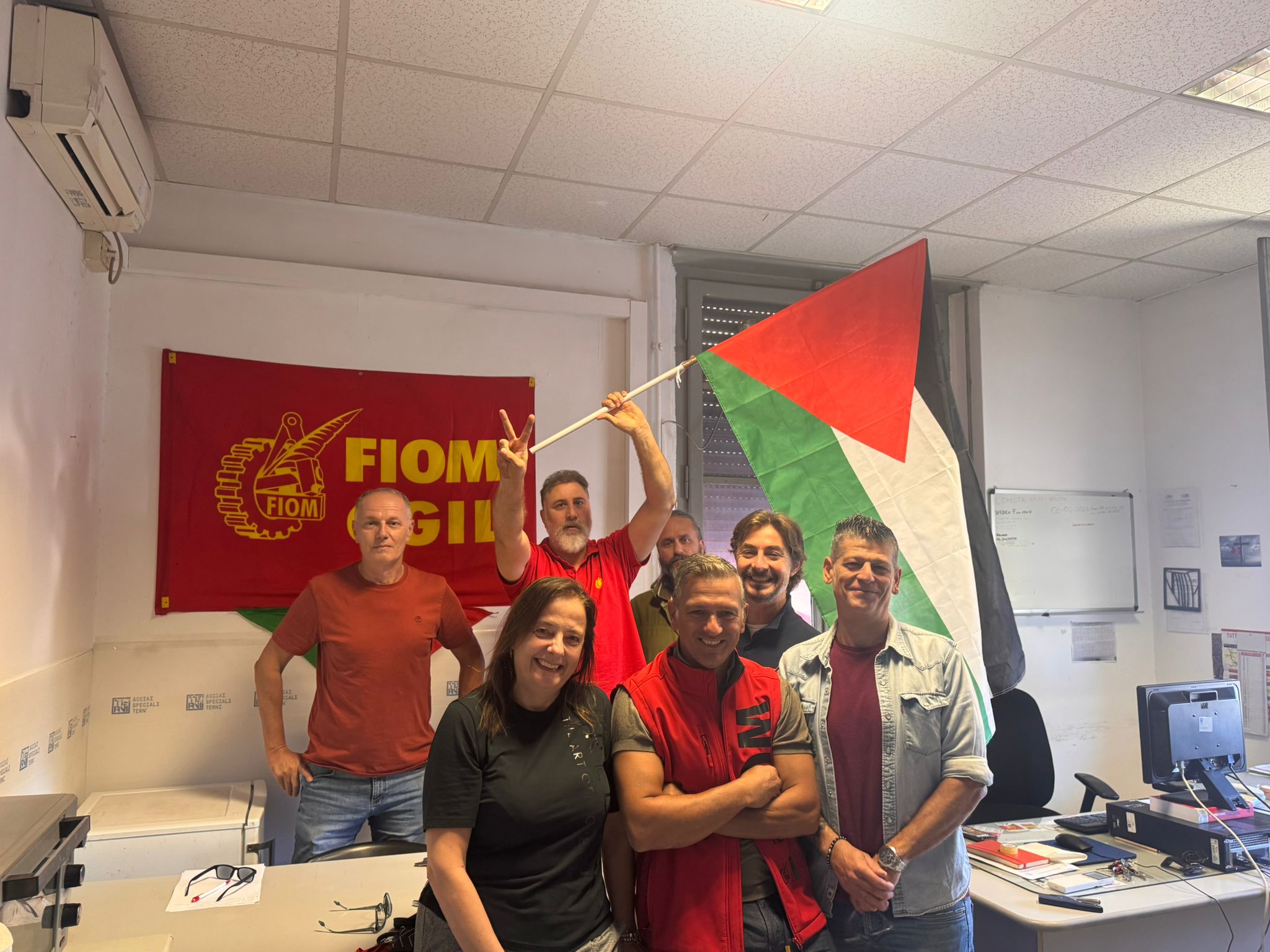 Le Rsu Fiom di Arvedi-Acciai Speciali Terni hanno esposto alla finestra della propria sala sindacale la bandiera della Palestina. Consapevoli dell’atto simbolico, le Rsu Fiom si impegnano a sostenere «tutte le iniziative e mobilitazioni che proporranno la Cgil e la