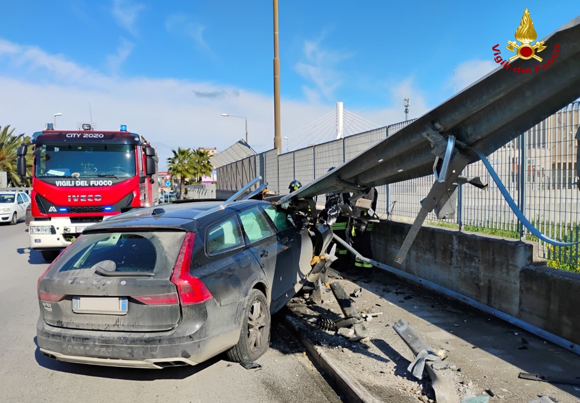 L’urto è stato talmente energetico da sradicare diversi metri di guardrail, proiettando detriti e lamiere sulla sede stradale e creando una situazione di forte pericolo per la viabilità. Immediato l’intervento di una squadra dei Vigili del Fuoco, che ha lavorato con rapidità per mettere in sicurezza l’intera area e rimuovere le parti metalliche divelte che ostruivano il passaggio.