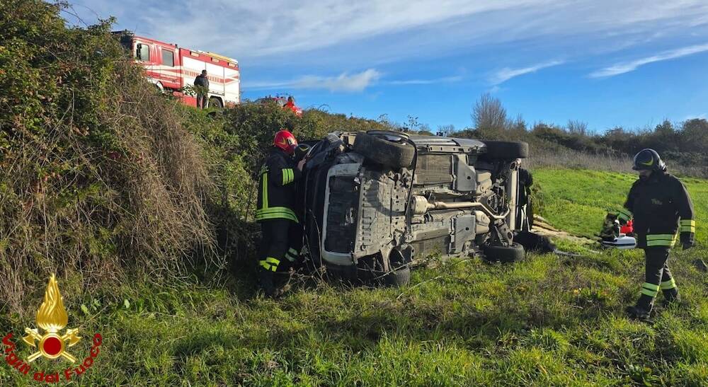 Incidente stradale questa mattina con un’auto che ha sbandato, sfondando un muretto a secco a lato della carreggiata e ribaltandosi sul terreno sottostante.