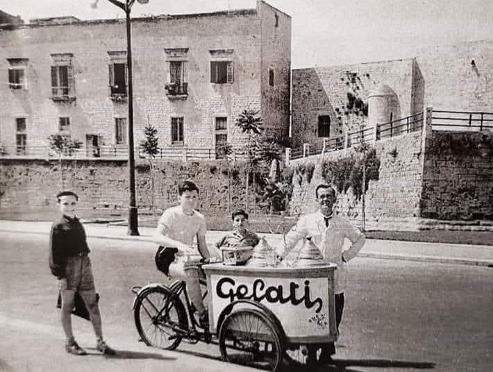 Ma se si pensa al gelato, non può non venire in mente il leggendario carretto del gelato, che da sempre è la gioia di bambini e ragazzi. Tantissime le generazioni che mentre giocavano per strada o sulla spiaggia, attendevano con ansia l’arrivo del gelataio, che il più delle volte aveva un unico gusto: l’iconico gelato al limone. Un gusto unico, semplice, profondamente rinfrescante, mentre qualcun altro serviva anche un altro gusto, cioccolato o crema, per la gioia dei più golosi. Si ricordano il signor Antonio, che con il suo carretto bazzicava soprattutto nei pressi di Bari vecchia, e poi Giovanni in via Manzoni, Bruno in piazza Risorgimento, Vitino e altri che sono diventati simboli del gelato al carretto o al chioschetto. “Ricordo la formetta al limone, a 5 lire. Una bontà infinita!”, “Si annunciava con una trombetta, e i bambini spuntavano da ogni angolo! Bei ricordi!”, dice chi ha vissuto il gelato in quel modo. E ancora: “Che nostalgia! C’era anche il gelato a rondelle con la cialda sopra e sotto. O la formetta di limone, bontà infinita!”, “Con l’arancia svuotata e il gelato al suo interno”. E con 5 lire, poi 10 e via via sempre in aumento col passare degli anni, il gelato del carretto sembrava magico, più dolce. Che sia al limone, pistacchio, fragola, puffo, cioccolato, caffè o liquirizia, con panna o senza, in cono, in coppetta o in vaschetta da gustare a casa, il gelato è stato, è e sarà sempre un momento unico, di serenità e, soprattutto, di felicità.