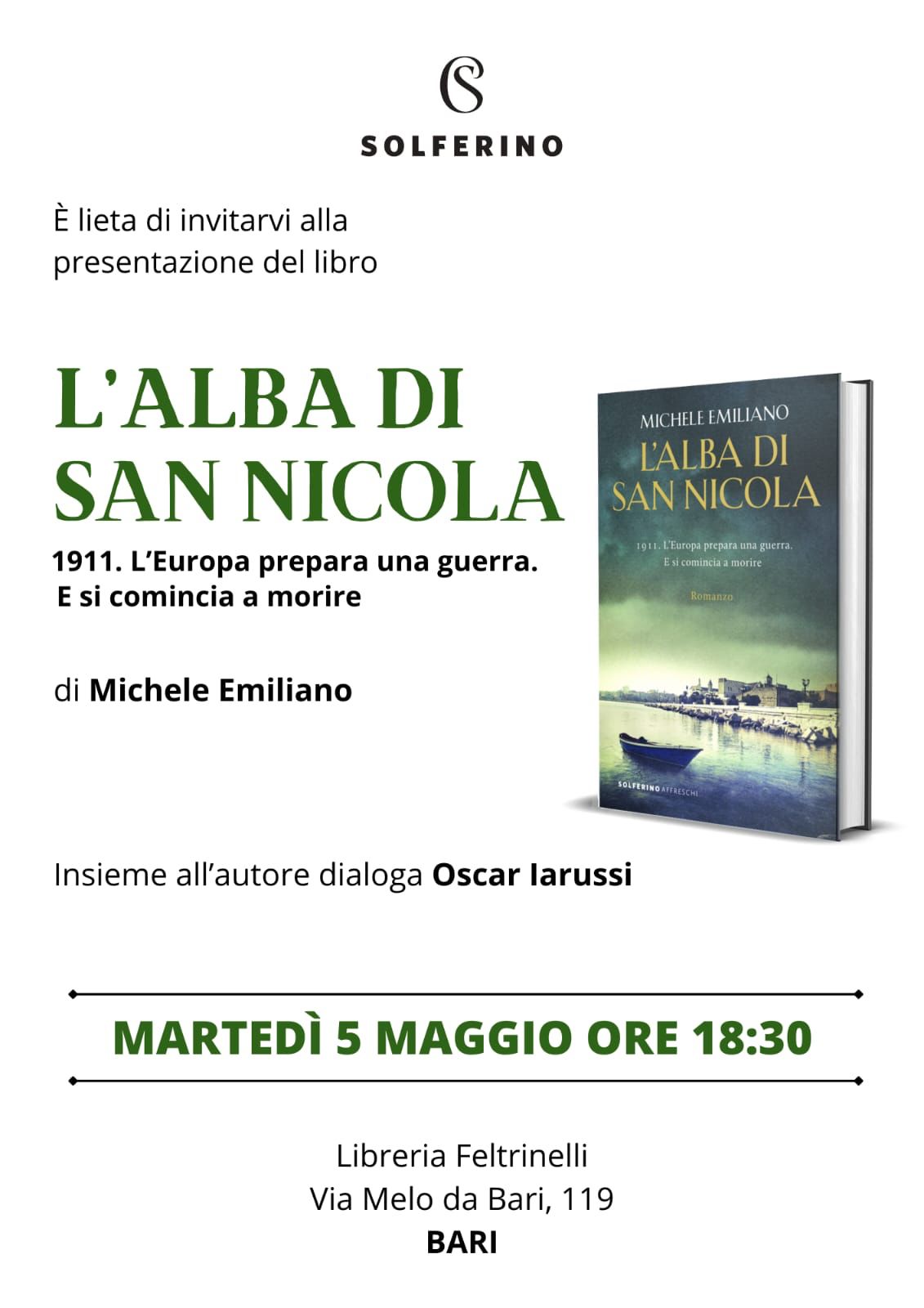 Il libro è un noir ambientato nel 1911, un’epoca in cui l’Europa era ancora ignara dell’imminente catastrofe che la attendeva, ma sentiva già i primi presagi della Grande Guerra . “L’Europa prepara una guerra. E si comincia a morire”, recita il sottotitolo del libro, suggerendo una narrazione che intreccia i grandi mutamenti geopolitici con i destini individuali, all’ombra del Santo patrono del capoluogo pugliese.