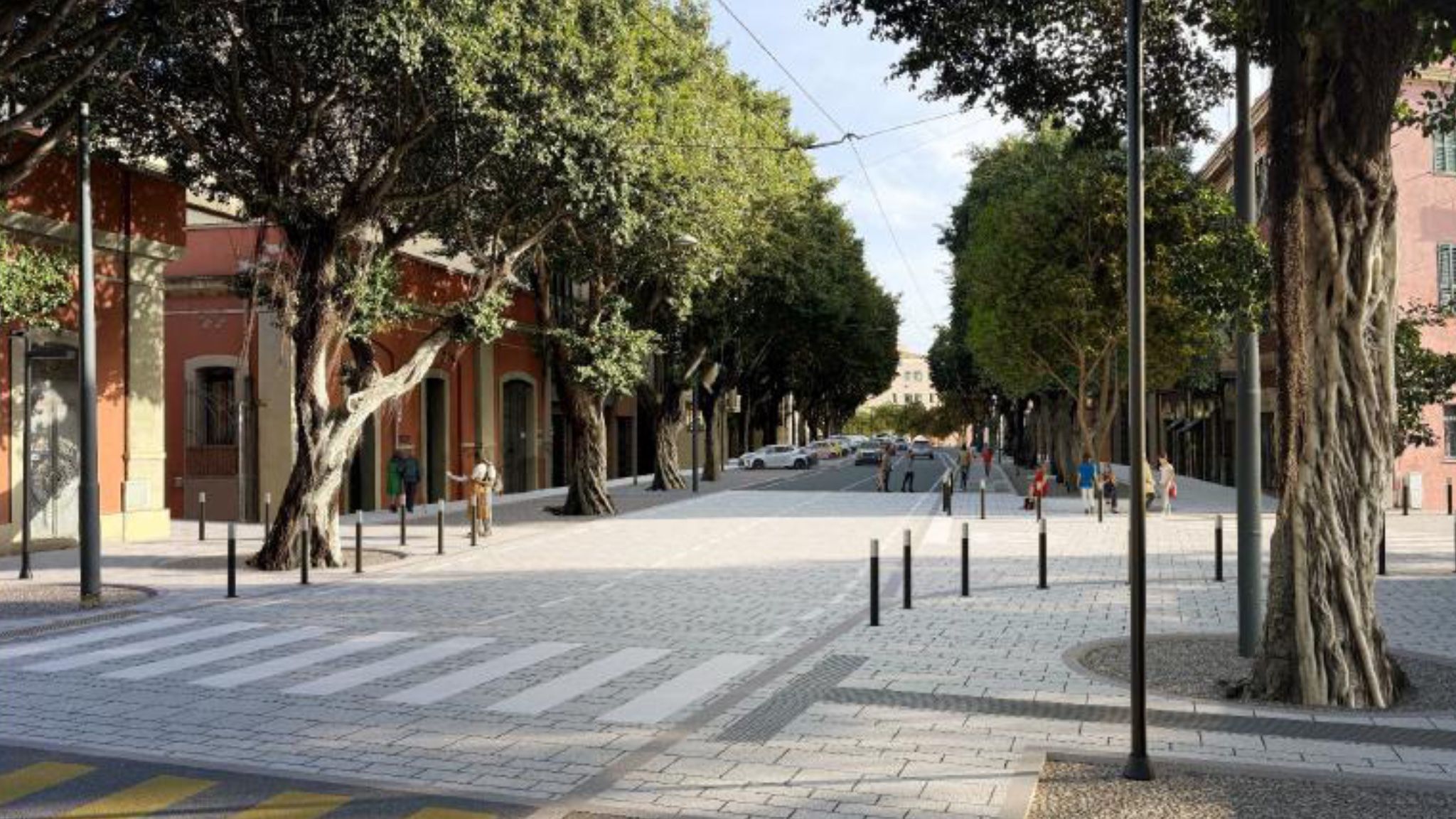 Il progetto punta a trasformare profondamente l’identità del viale, privilegiando la mobilità sostenibile e la resilienza climatica: