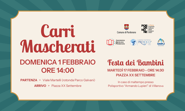 PORDENONE – La città si appresta a vivere il periodo più divertente dell’anno! Tutto è pronto per il Carnevale a Pordenone che, nella sua edizione 2026, presenta un calendario ricco di attività, soprattutto per i più piccoli.