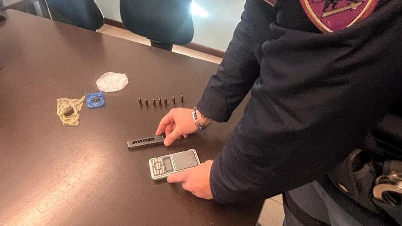 Durante la perquisizione dell’appartamento, sono stati trovati un caricatore per pistola calibro 7,65 con sette cartucce al suo interno. Nella stessa area, gli agenti hanno scoperto anche un involucro contenente hashish e un bilancino di precisione.