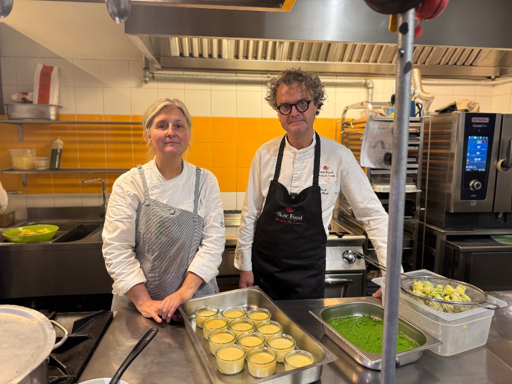 06.12.2025 – 18.50 – Trieste ha ospitato una serata dedicata alla biodiversità e alla cultura gastronomica con la cena a quattro mani “Tra Carso e Valsugana, la biodiversità a tavola”, organizzata da Mimì e Cocotte nell’ambito di Farmer & Artist 2025. Protagonisti due cuochi dell’Alleanza Slow Food, Paolo Betti e Giovanna Abbondanza, che hanno costruito un percorso enogastronomico tra i sapori del Carso triestino e le montagne trentine. Prima dell’inizio della cena, i due chef hanno illustrato ai nostri microfoni la filosofia alla base dell’iniziativa. «Sono fortunato a essere ospite qui — ha spiegato Betti —. Vengo dal Trentino e portiamo un po’ di contaminazioni. Siamo cuochi dell’Alleanza Slow Food: è il nostro modo di pensare la cucina». Originario di Pergine Valsugana, Betti ha guidato per dodici anni il Rifugio Maranza e oggi porta la sua filosofia su ruote con lo Slow Truck, presente a eventi come Terra Madre 2024. «Il cibo è cultura quando si produce, si prepara e si consuma — sottolinea lo chef —. Cucinare è un’azione culturale e un impegno etico verso produzioni sostenibili e ingredienti locali».