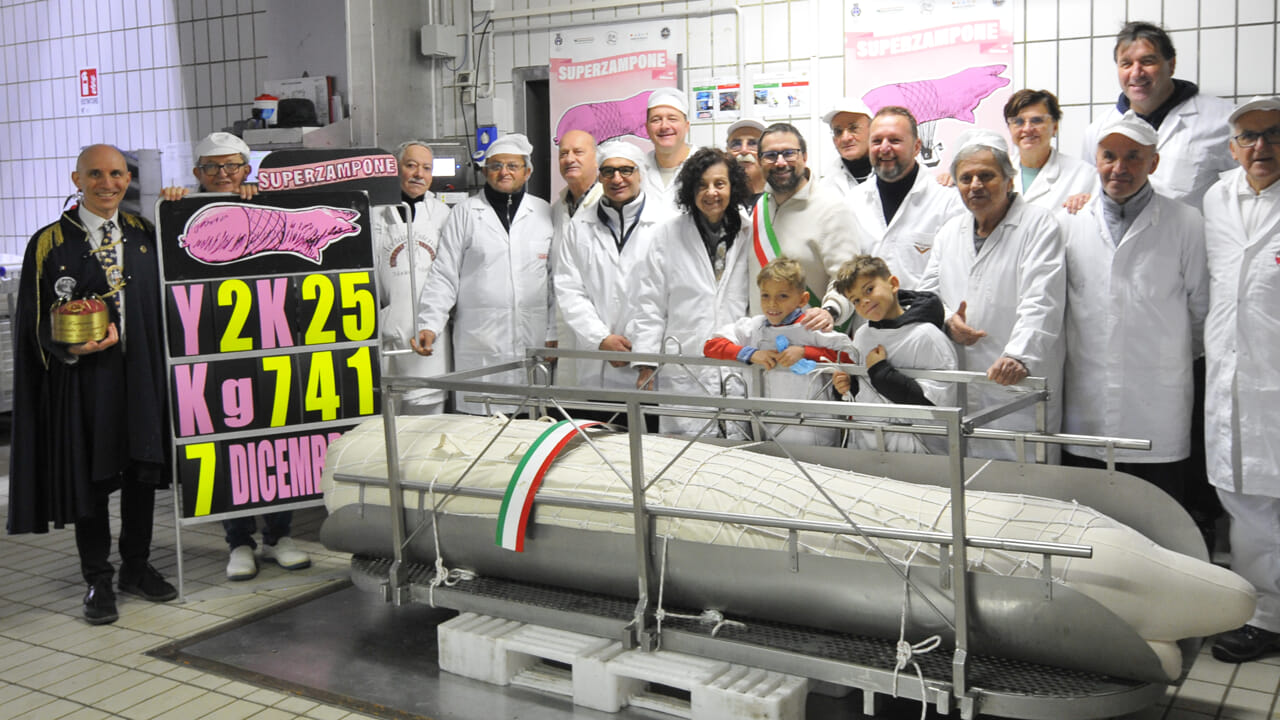 L’Ordine dei Maestri Salumieri Modenesi, coadiuvato dall’instancabile impegno dei numerosi volontari, ha permesso per la trentaseiesima volta di presentarsi ai golosi con un insaccato gigante, del peso di 741 chilogrammi. E’ stata la stessa Presidente “Luisa Falchi Vecchi”, a coordinare la preparazione dello Zampone più buono del Mondo.