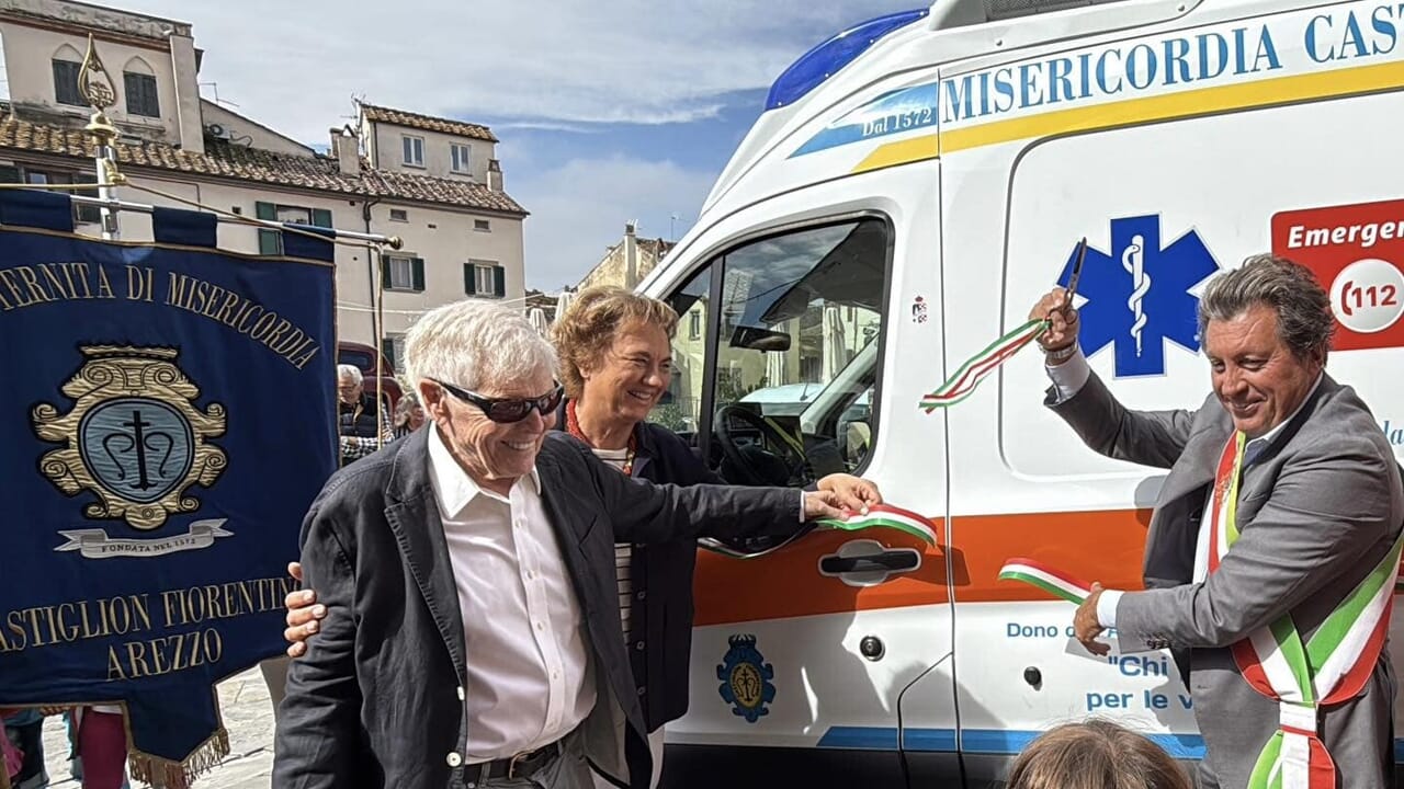 Qualche settimana fa, è stata presentata la nuova ambulanza donata proprio da Aubrey alla Confraternita di Misericordia di Castiglion Fiorentino.