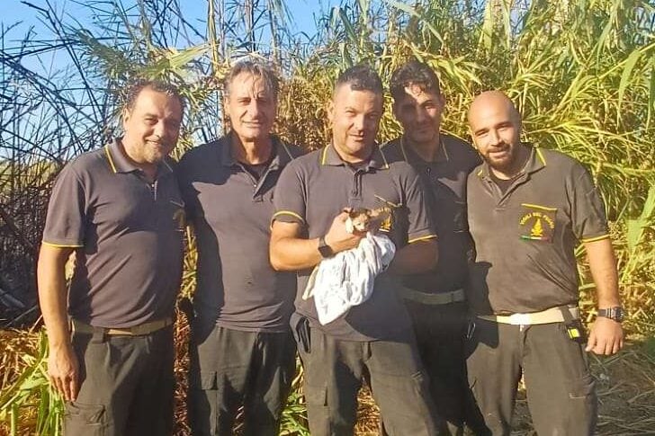 Incendio in un canneto a Briatico: pompieri salvano un gattino e uno di loro lo adotta