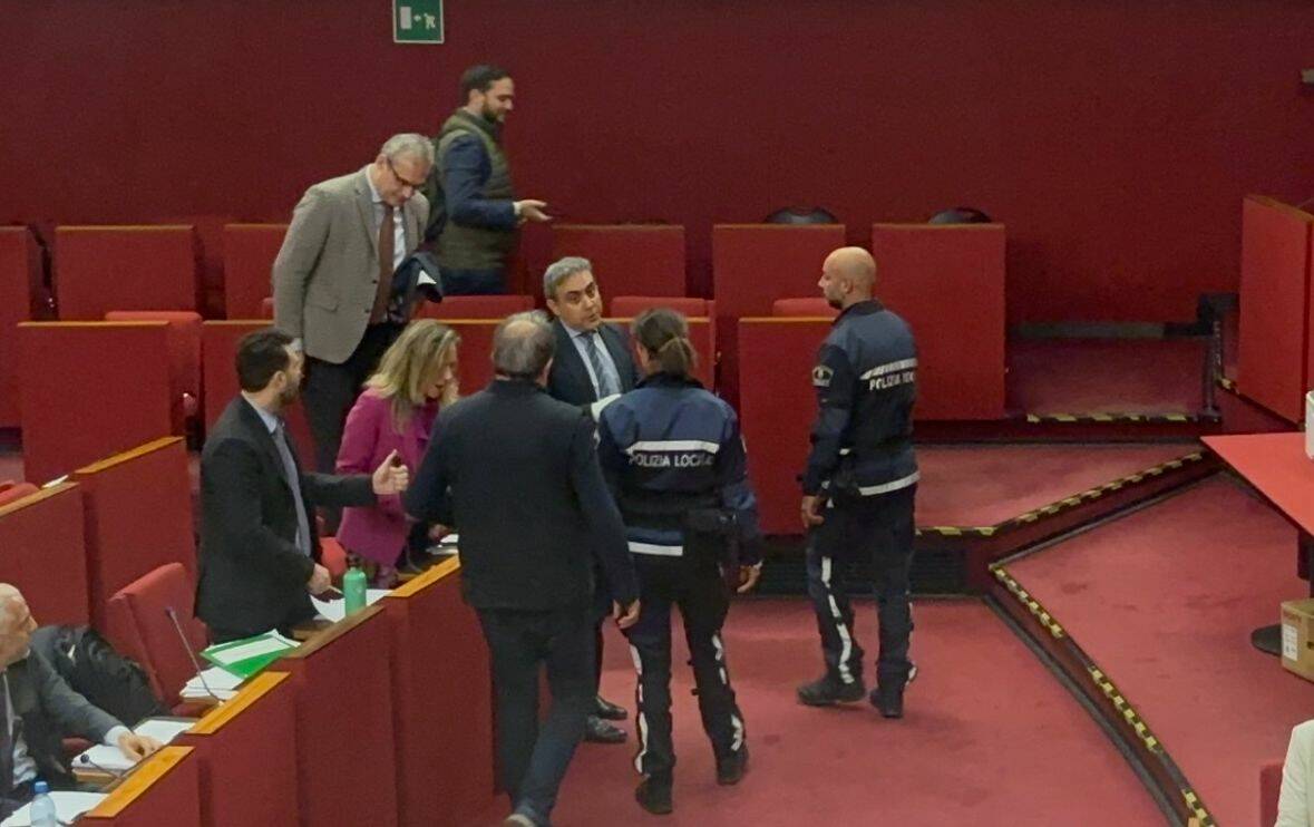 Contemporaneamente ha sospeso la seduta ma intanto alcuni agenti si erano già avvicinati alla consigliera leghista per scortarla all’esterno dell’aula rossa, tra le accese proteste dell’opposizione.