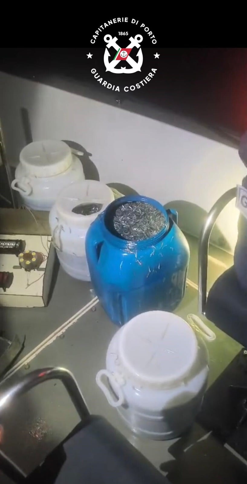 Sono stati sequestrati complessivamente circa 250 chilogrammi di novellame di sarda, oltre a fonti luminose non consentite.