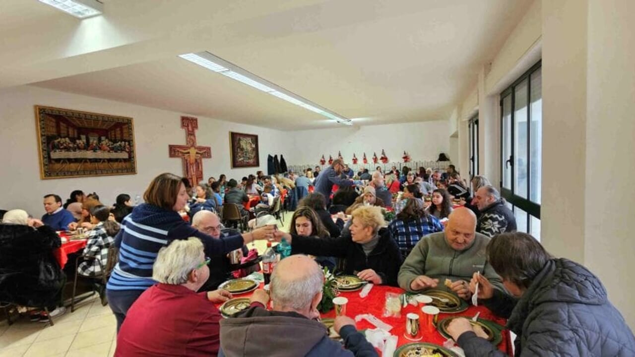 “Oggi ci meritiamo di vivere insieme una giornata come una famiglia, grazie a tutti voi, perché ci permettete di dare un senso al Natale e di viverlo con voi che siete i tesori della Chiesa”: è stato l’augurio e il benvenuto del direttore della Caritas diocesana di Perugia-Città della Pieve, don Marco Briziarelli. “Una Chiesa che non incontra i poveri e non li mette al centro, dice papa Leone – ha sottolineato don Marco – non ha ragione di esistere. Oggi siamo tutti fratelli e sorelle, non c’è volontario, non c’è persona aiutata, e questo pranzo di Natale sia veramente festa per ognuno.”
