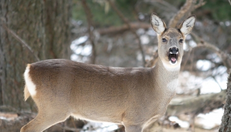 In questa tranquillità, avanziamo molto lentamente. Tra gli alberi, via via sempre più bianchi, si muove con passo leggero un capriolo. Procede con calma, cercando, sotto il manto nevoso, qualche filo d’erba.