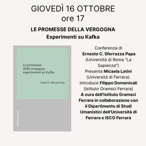 Avrà come tema “Le promesse della vergogna: esperimenti su Kafka” la conferenza di Ernesto C. Sferrazza Papa in programma giovedì 16 ottobre 2025 alle 17:00 nella sala Agnelli della biblioteca comunale Ariostea (via delle Scienze 17, Ferrara).