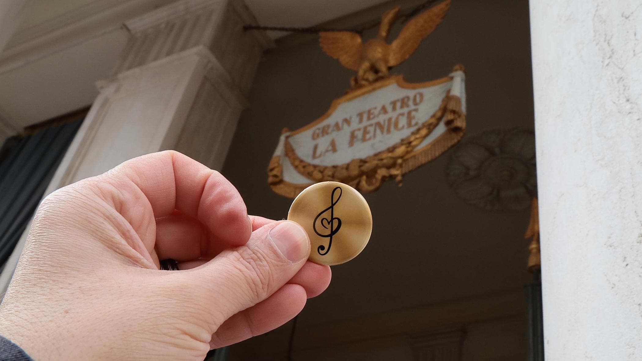 La spilletta con una chiave di violino è stata distribuita al pubblico in Campo San Fantin, fuori dal teatro