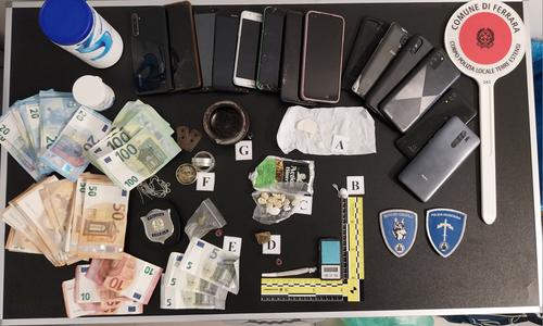 Aveva 11 dosi di stupefacente in tasca e al suo domicilio nascondeva in un armadio banconote di piccolo taglio, per un valore complessivo di quasi 3mila euro, oltre a varie tipologie di droga e attrezzatura per la trasformazione e il confezionamento. A finire nella rete della Polizia Locale, durante un servizio in abiti civili tra Barco e Pontelagoscuro svoltosi mercoledì pomeriggio, è stato uno spacciatore 35enne di origini nigeriane – con numerosi precedenti di polizia per il reato di detenzione di droga ai fini di spaccio -, fermato nella zona tra via Padova e via Bentivoglio, dopo che era stato individuato nel tentativo di vendere crack a una donna. Alla vista di persone che guardavano nella loro direzione, infatti, il pusher ha provato ad allontanarsi gettando a terra quanto trasportava.