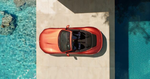 La grande differenza è nel tetto retrattile, offerto sia in tessuto sartoriale (quattro tinte) sia tecnico (due colori, incluso il nuovo Tecnico Ottanio), che si apre in 13,5 secondi fino a 60 km/h. È una soluzione che rende ancora più versatile il bolide, tra l’altro a listino anche nella suggestiva carrozzeria rosso Tramonto. Il soft top porta via poco spazio (appena 22 centimetri di spessore quando è ripiegato) lasciando spazio ai bagagli: tra i 172 e 225 litri di capienza. La capote è naturalmente isolata, dal punto di vista acustico e termico, tanto viene promessa con prestazioni “allineate a quelle di un tetto rigido retrattile (RHT) Ferrari”.