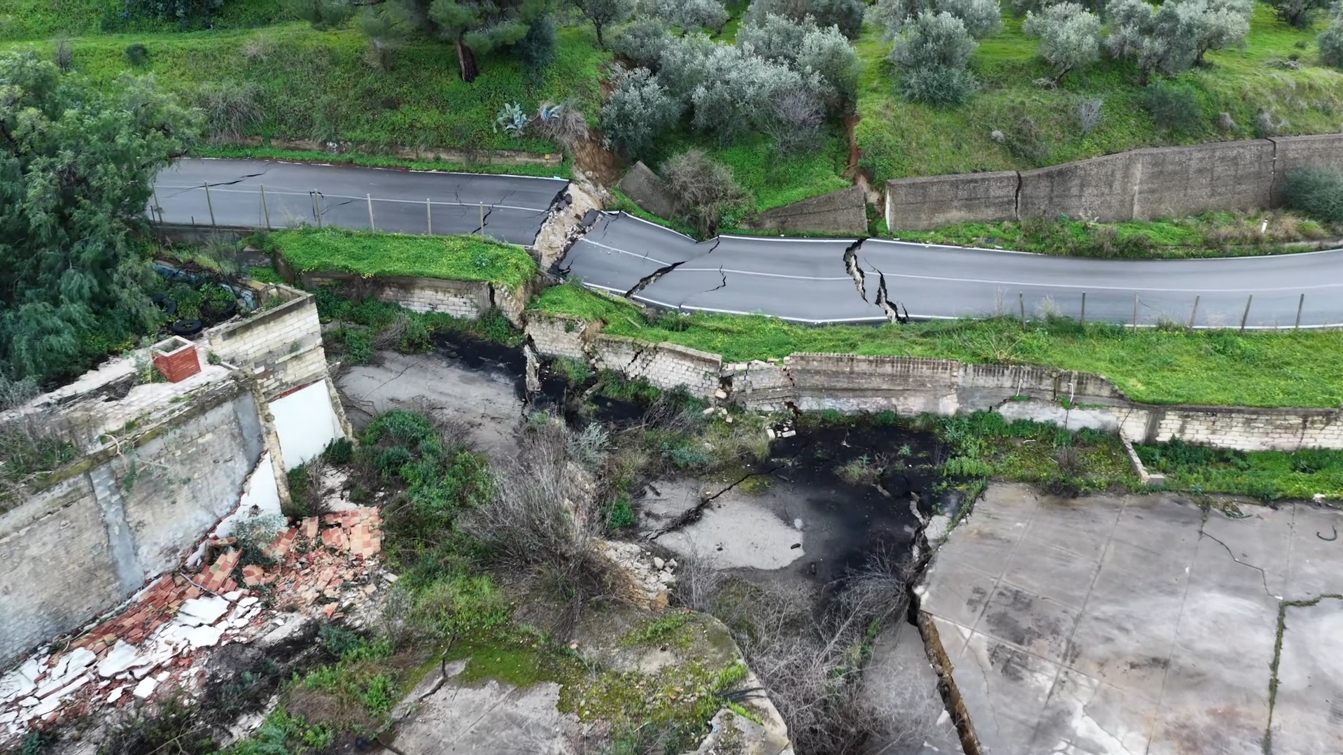 Frana a Niscemi, spaccata in più punti la strada che porta a Gela: il video dal drone