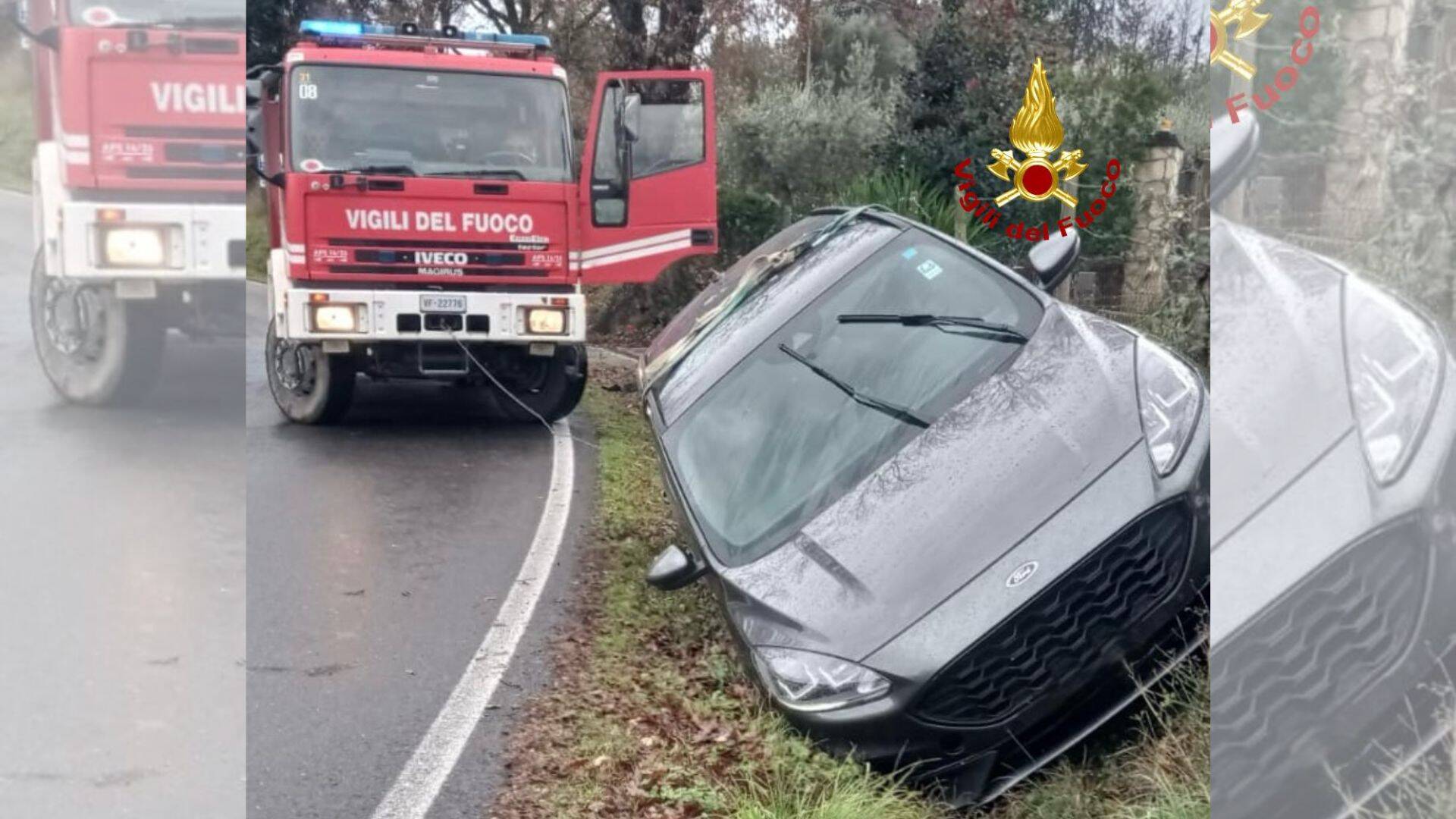 L’auto è finita in fossa, appoggiata al terrapieno laterale. La donna che si trovava all’interno è riuscita ad uscire in modo autonomo dalla vettura. La conducente non ha riportato ferite e non si è resa necessaria l’assistenza sanitaria.