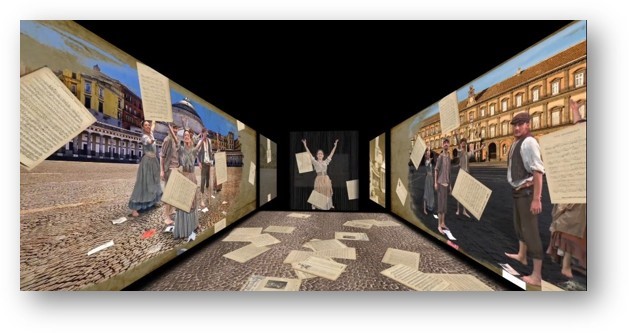 La Stanza della Memoria si affianca così alla Stanza delle Meraviglie – l’innovativo spazio immersivo dell’Ecd ideato da Marisa Laurito e progettato da Bruno Garofalo –, che, in un percorso della durata di trenta minuti, consente di attraversare virtualmente una Napoli d’altri tempi, tra suoni, colori e immagini in movimento, per respirarne le atmosfere e per lasciarsi trasportare dalle melodie che hanno costruito un’identità musicale partenopea dal tardo Ottocento fino al 1940.