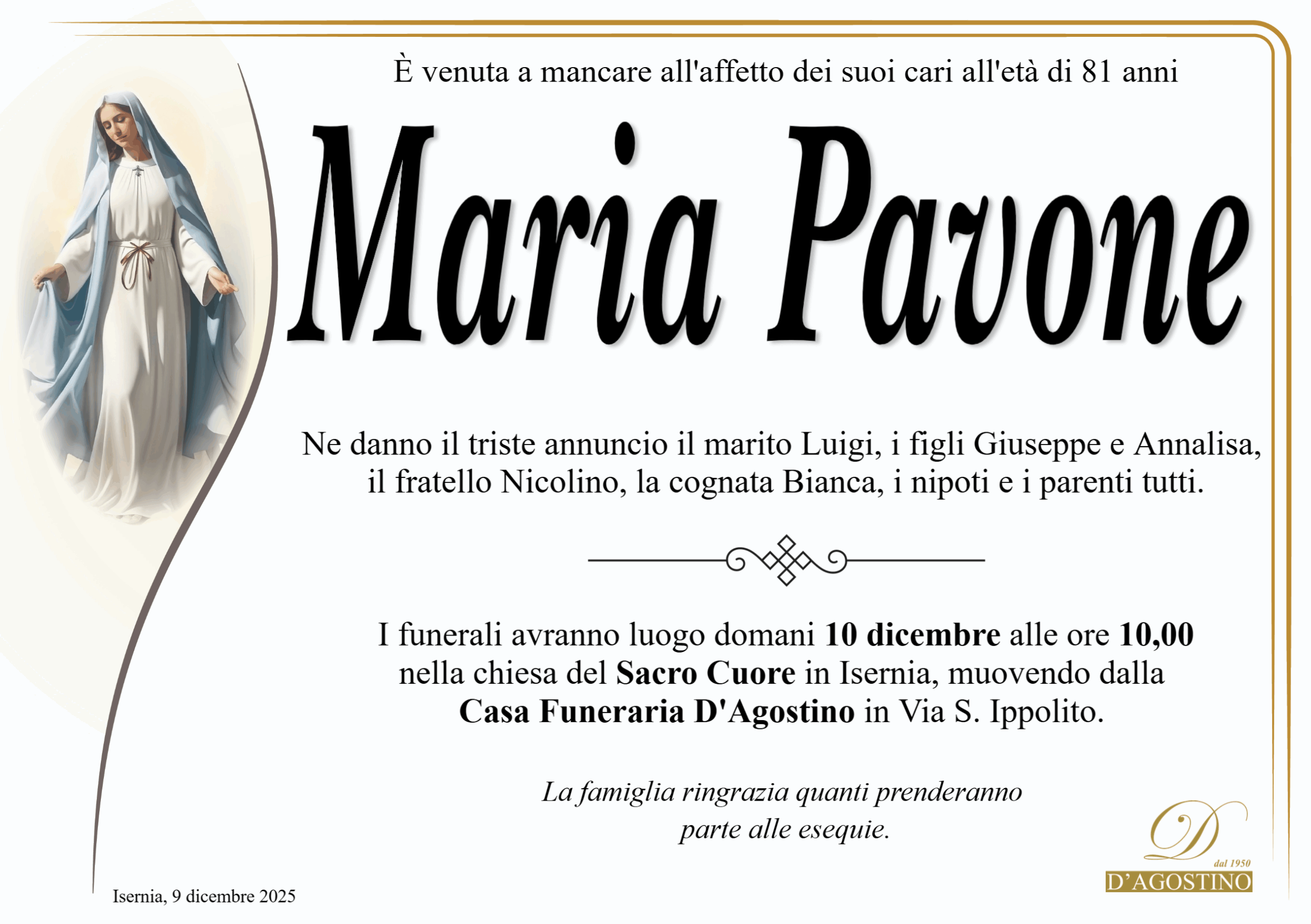 Isernia, lutto per Maria Pavone | isNews
