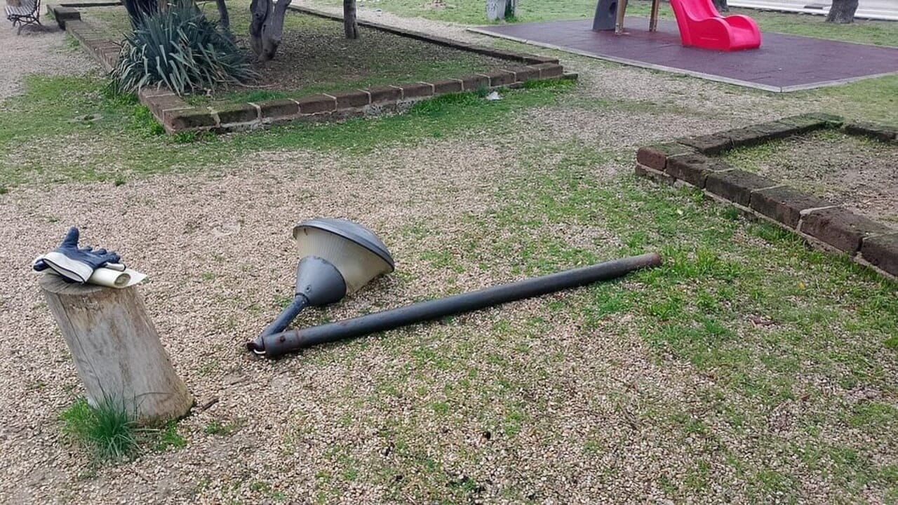 lampioni divelti e cestini rovesciati