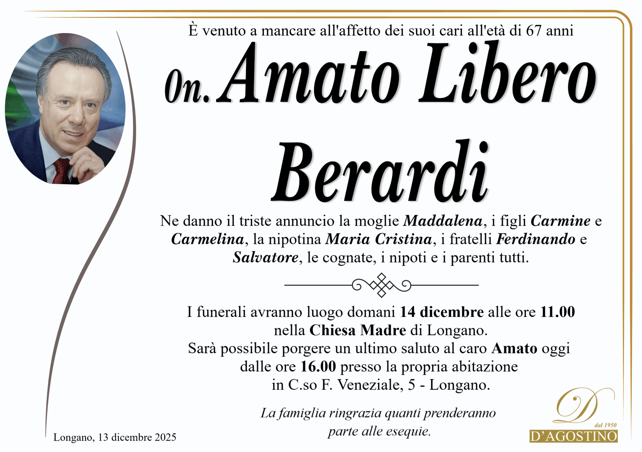 Longano, lutto per Amato Libero Berardi | isNews