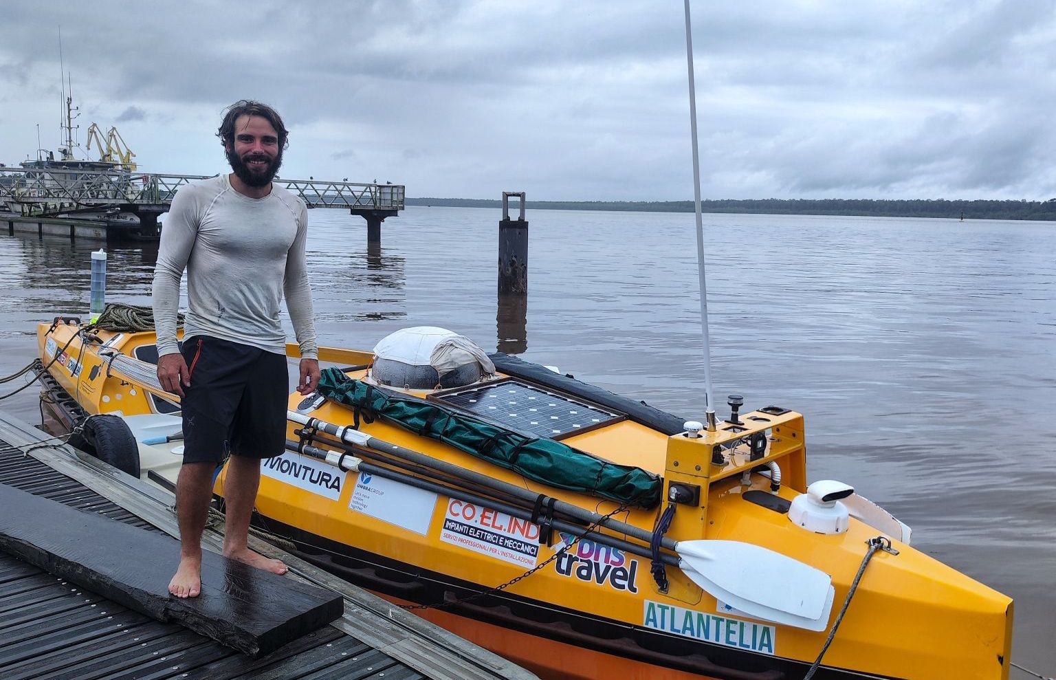 Quindi l’incidente rischiato quando ormai era quasi giunto sulle coste della Guayana: «A 15 km dalla costa sono quasi naufragato su degli scogli per la corrente di marea che mi stava portando via e a causa del fondale bassissimo di queste zone rischiavo di toccare il fondale con la deriva e danneggiando la barca, infine dei pescatori si sono offerti di aiutarmi per riuscire a risalire il fiume nel quale si trova il piccolo porto dove si conclude questa mia prima esperienza oceanica».