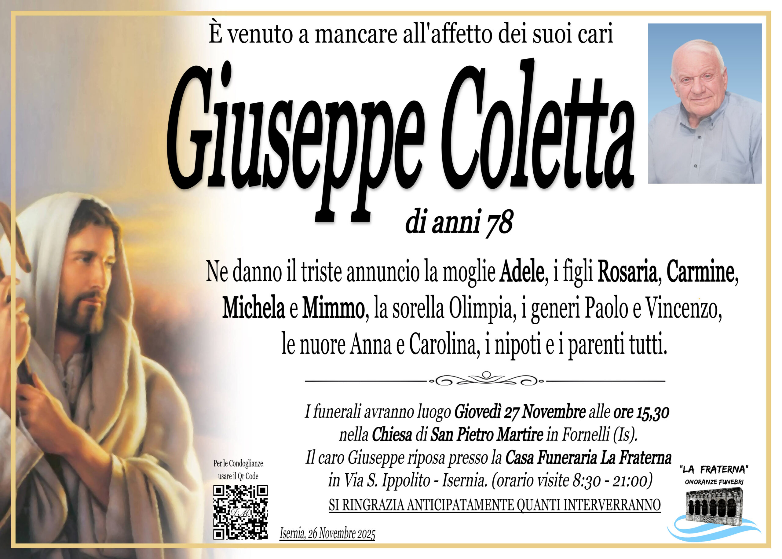 Lutto a Fornelli per Giuseppe Coletta | isNews