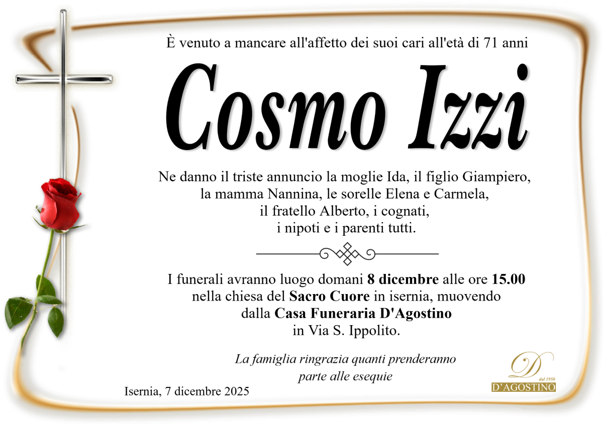 Lutto a Isernia per l’addio a Cosmo Izzi | isNews