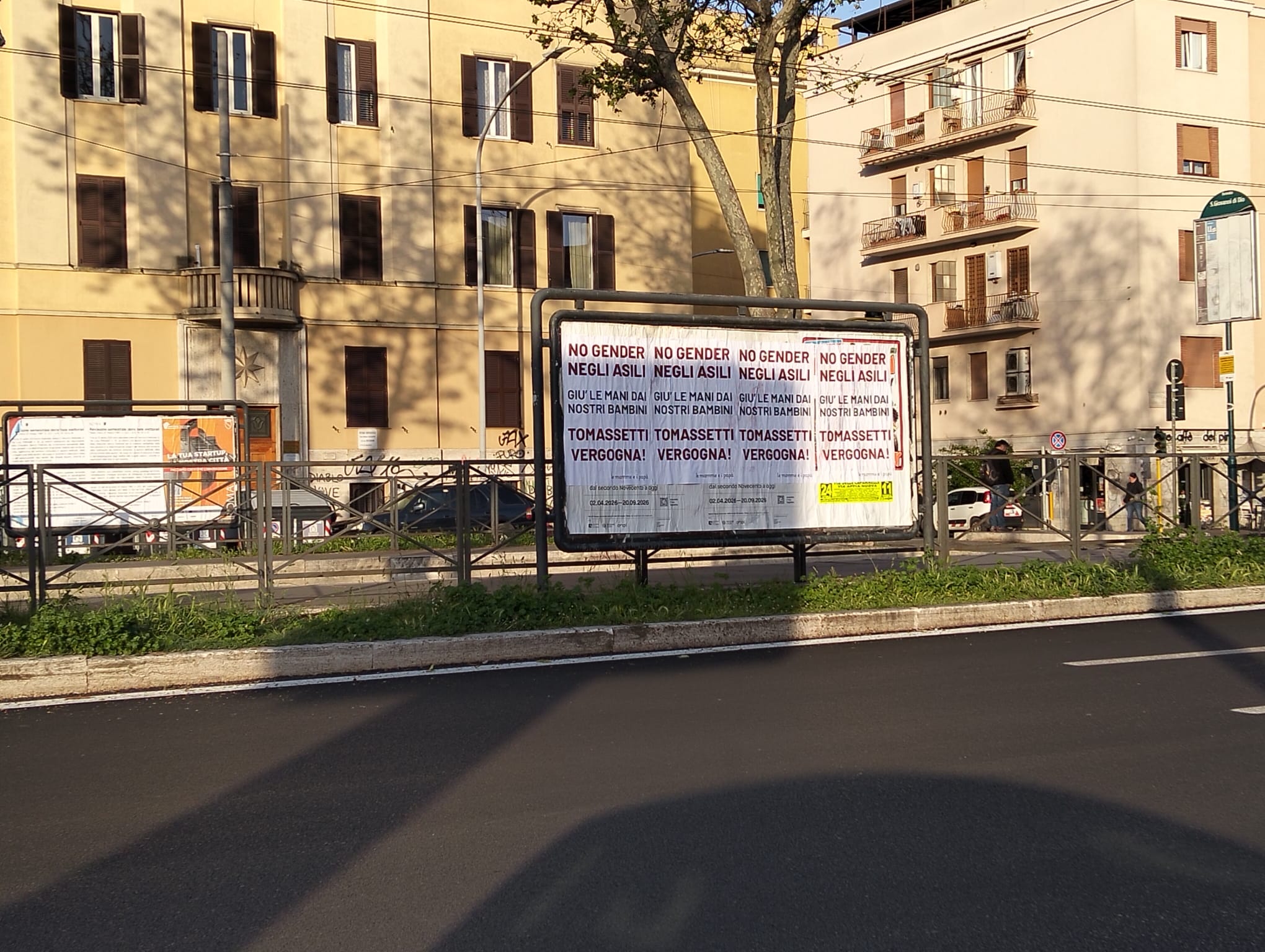 Manifesti comparsi nella notte in diversi quartieri della Capitale riaccendono il confronto politico sui temi educativi nelle scuole dell’infanzia.