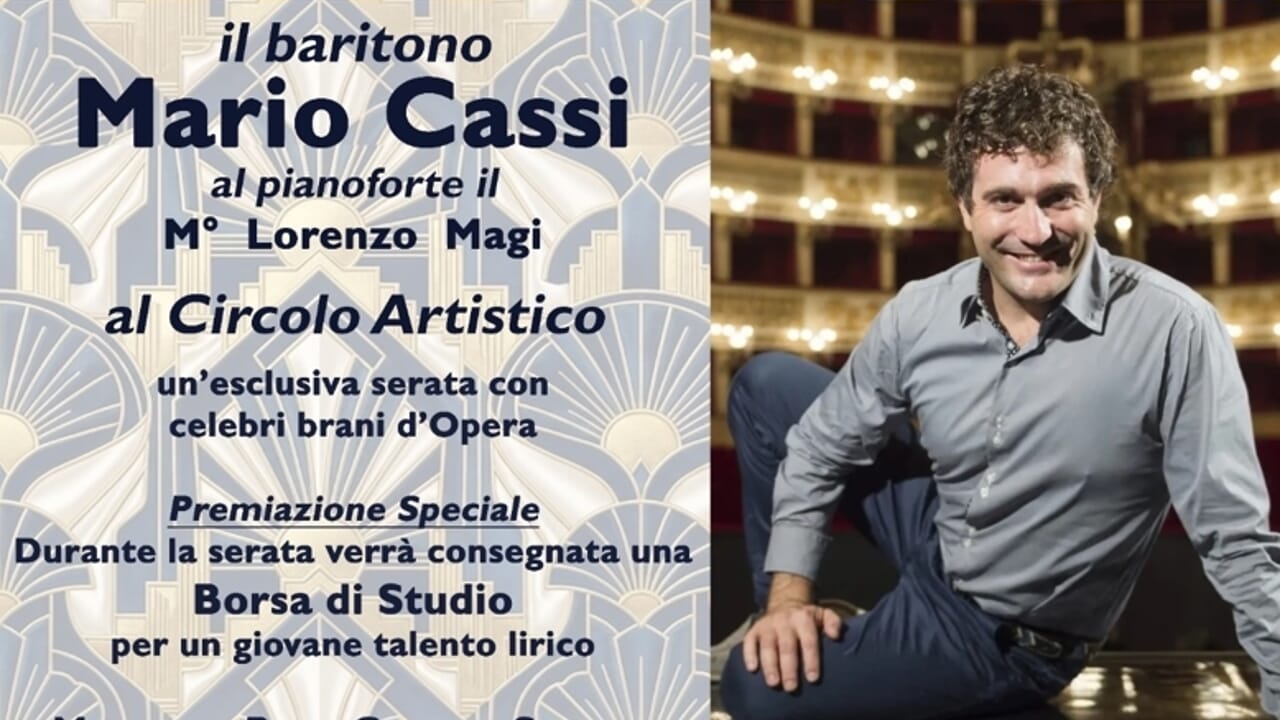 Nel corso della serata, impreziosita da celebri brani del repertorio operistico, il Circolo Artistico conferirà due borse di studio a due giovani talenti lirici delle Stanze dell’Opera, selezionati personalmente da Mario Cassi. Un momento di grande valore simbolico, che unisce la celebrazione di una carriera affermata al sostegno concreto delle nuove generazioni di cantanti. Accompagnerà al pianoforte il M° Lorenzo Magi e a moderare l’incontro sarà il Prof. Claudio Santori, Consigliere del Circolo Artistico, già docente di Mario Cassi al Liceo, in un dialogo che intreccerà musica, ricordi e riflessioni sul ruolo della formazione artistica.