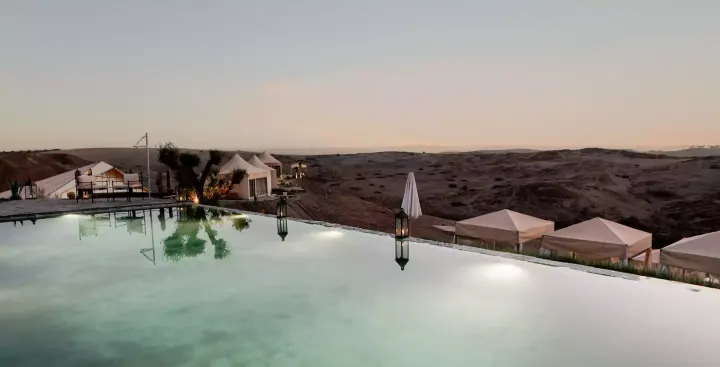 Il pacchetto comprende inoltre una cena romantica in un esclusivo campo di lusso nel deserto di Agafay.