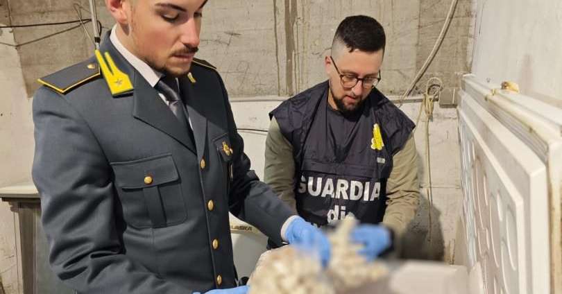 L’ispezione, finalizzata anche alla verifica della regolare assunzione dei lavoratori, ha riguardato il rispetto delle norme a tutela della sicurezza alimentare. Durante i controlli nei locali, i finanzieri hanno individuato alcune celle frigorifere contenenti prodotti ittici surgelati, tra cui gamberi, polpi, salmone, seppie e branzini, conservati in sacchi privi delle prescritte indicazioni di tracciabilità.