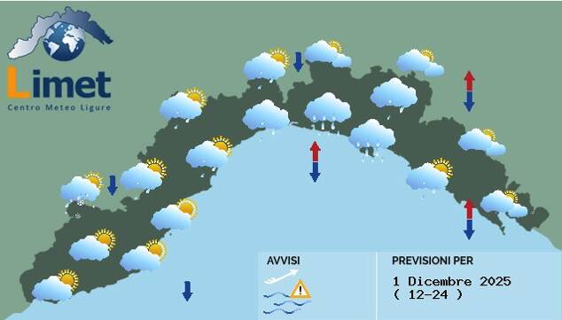 Il meteo Liguria per oggi, lunedì 1 dicembre