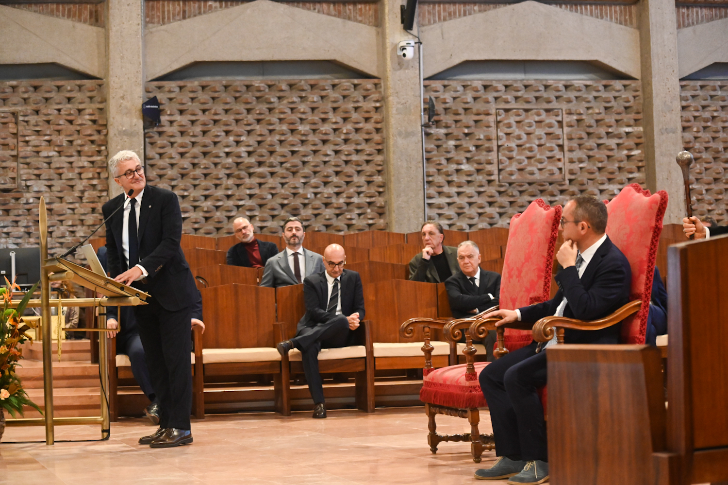 Ad aprire l’incontro è stato il presidente del Conservatorio Dario Guardalben, che ha sottolineato il valore simbolico del luogo e la forza della comunità del Briccialdi: «Questa sala restaurata torna finalmente ad essere fruibile alla città dopo tanti anni – ha detto – e presto ospiterà le nostre produzioni musicali. Celebriamo oggi l’anniversario della statizzazione e ripercorriamo un cammino che, sotto la guida coraggiosa di chi mi ha preceduto, la professoressa Letizia Pellegrini, ha condotto a questo importante traguardo. La mia gratitudine va al personale, ai docenti, ai nostri studenti, vera forza attrattiva del conservatorio». A seguire, il direttore Roberto Antonello ha presentato i più recenti traguardi dell’Istituto, dal piano di internazionalizzazione alle nuove attività di ricerca. Antonello ha ricordato anche la partecipazione del Briccialdi al progetto Expo 2025 di Osaka, e le oltre settanta produzioni musicali gratuite che il conservatorio ha portato sul territorio, da Terni a Rieti, da Viterbo a Perugia fino a L’Aquila.