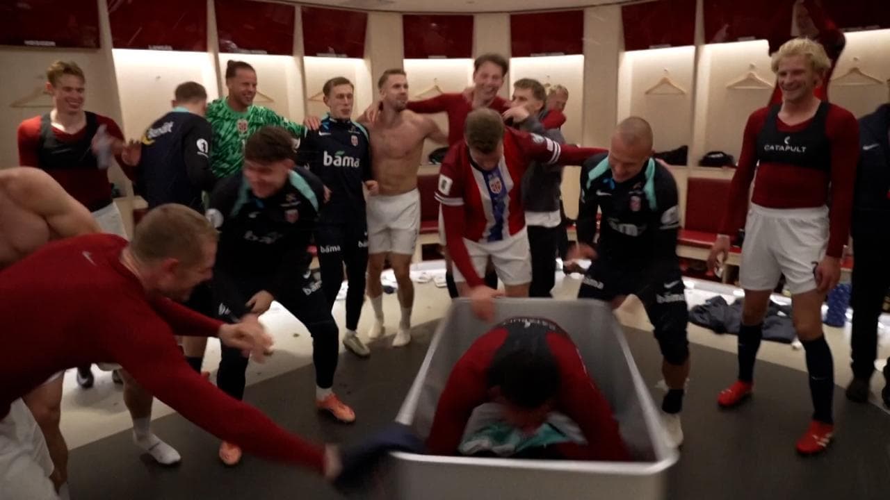 La nazionale di calcio maschile della Norvegia ha in tasca la qualificazione diretta ai Mondiali di Usa, Canada e Messico del 2026 (sarebbe costretta ai playoff solo se perdesse 9-0 contro l’Italia). Al termine della partita di giovedì contro l’Estonia, vinta 4-1, negli spogliatoi della squadra scandinava è esplosa la festa. Sotto lo sguardo divertito della stella Erling Haaland, i suoi compagni di squadra hanno scherzosamente buttato uno dei giocatori nella cesta dei panni sporchi, facendola girare su se stessa mentre loro cantavano e ballavano. Leggi Italia, per i Mondiali serviranno i play-off: le date e le possibili avversarie