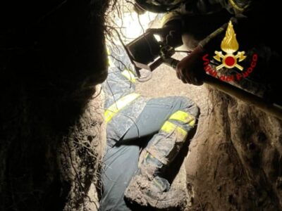 La morfologia del terreno ha reso l’operazione estremamente complessa. Per permettere il recupero dell’animale senza causargli danni, i soccorritori hanno dovuto impiegare un martello pneumatico per rimuovere porzioni di roccia e allargare la fessura in cui il segugio era rimasto bloccato.