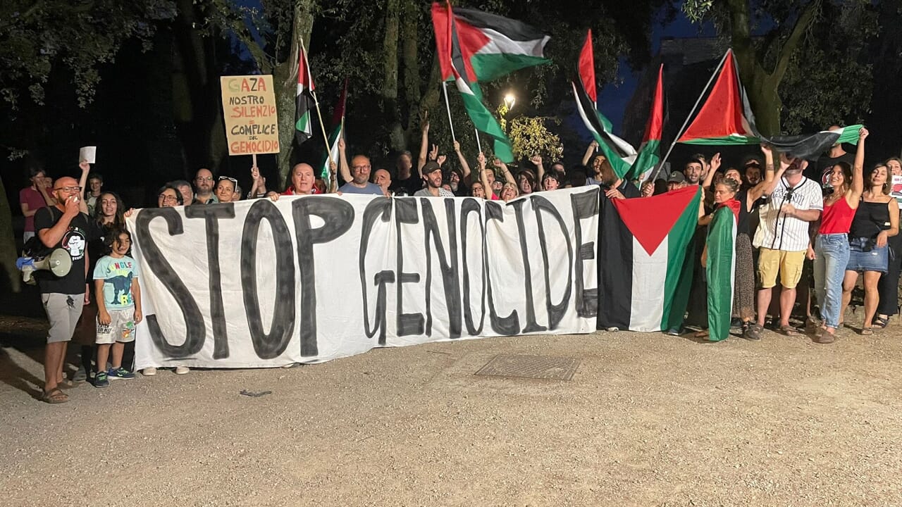 Dalle parole sui social ai fatti: ieri sera alle 20 di fronte al Prato, con uno striscione in cui era riportato “Stop genocide” , tanti aretini hanno deciso di manifestare il proprio dissenso, presentandosi e protestando contro l’evento promosso dalla Fondazione Guido d’Arezzo.