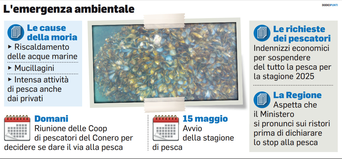 Una decisione più che mai sofferta, senza per altro avere delucidazioni da parte della Regione riguardo gli indennizzi. Ma l’unico dato certo, al momento, è che la presenza del mosciolo selvatico per questa stagione è ridotta al lumicino. Quasi zero.