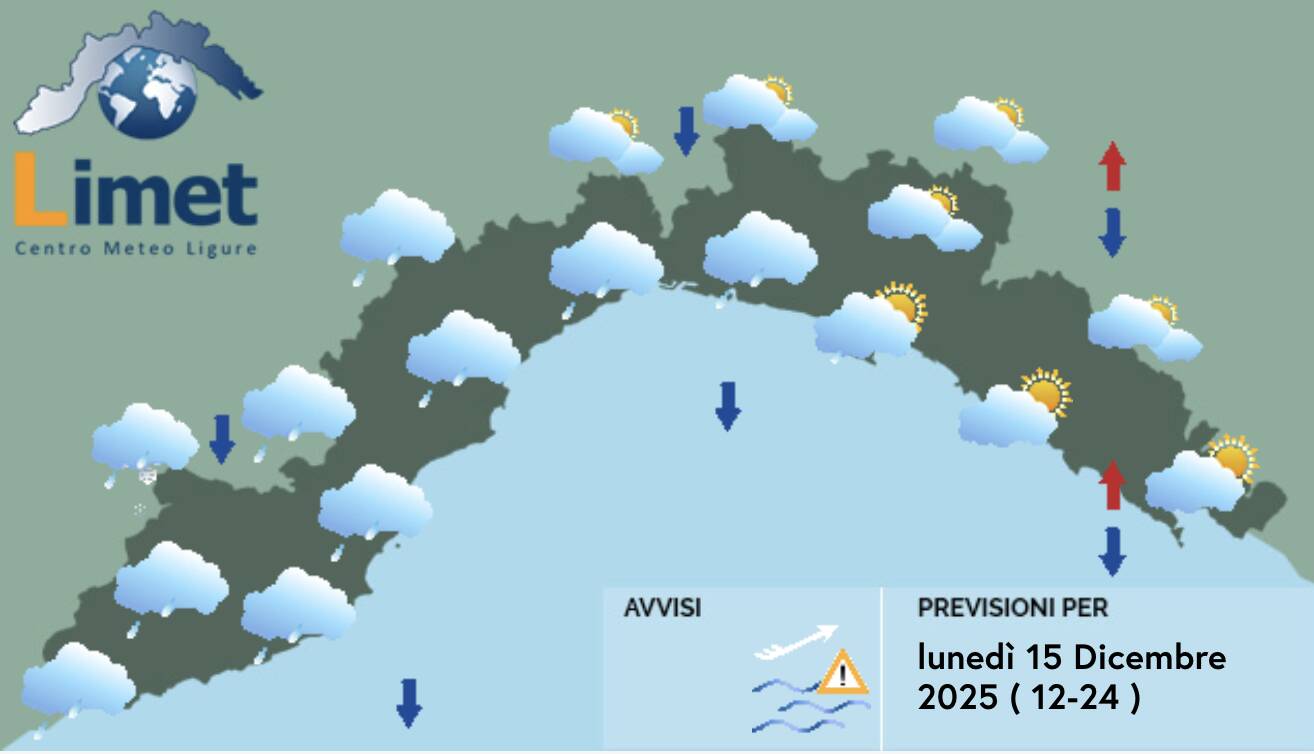 Meteo Liguria per lunedì 15 dicembre