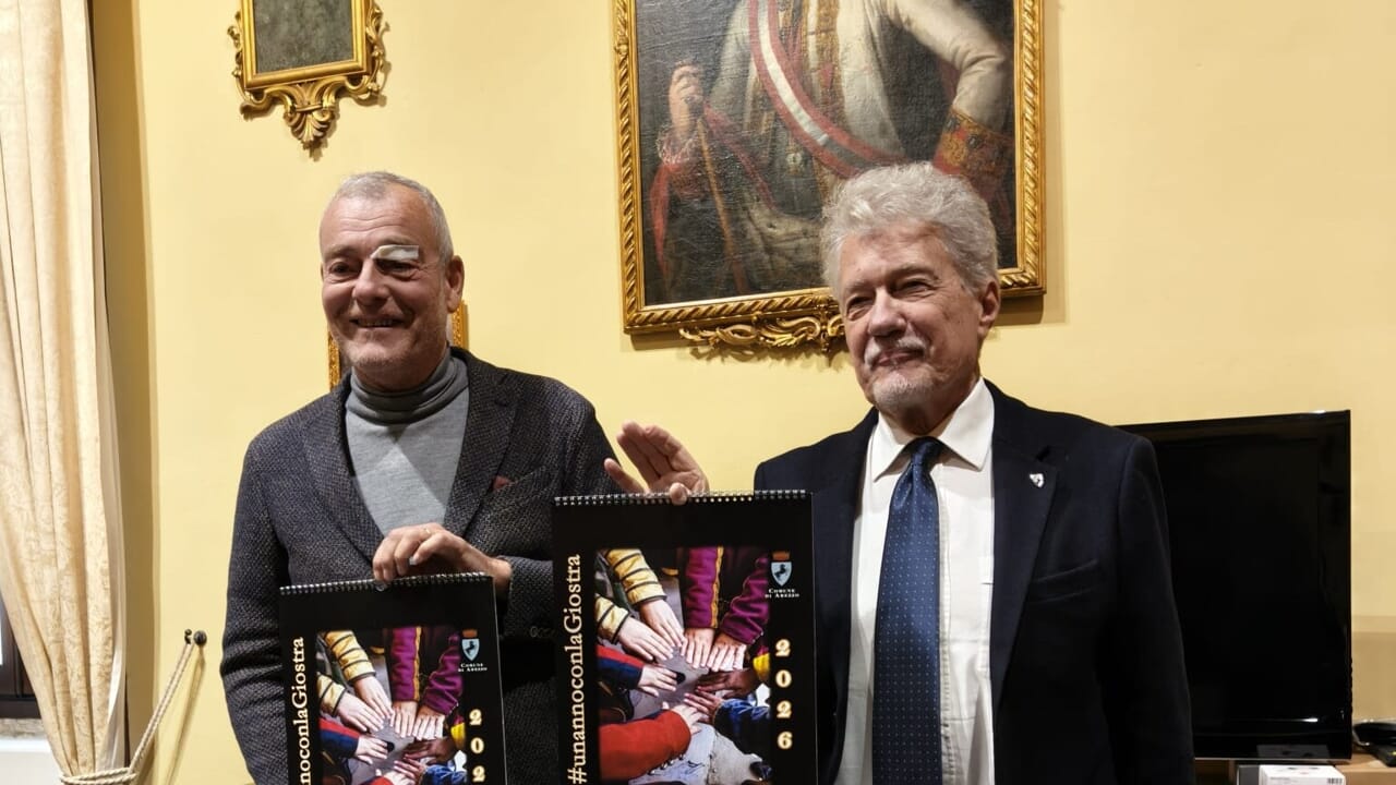 È stato presentato questa mattina dal sindaco Alessandro Ghinelli e dal consigliere comunale Paolo Bertini il calendario 2026 della Giostra del Saracino realizzato grazie alle foto di tutti coloro che hanno partecipato al contest di Instagram #unannoconlaGiostra. Giunto alla 2ª edizione, il calendario è stato realizzato in due versioni (da parete e da tavolo), è disponibile gratuitamente fino a esaurimento scorte e potrà essere richiesto scrivendo all’indirizzo giostradelsaracino@comune.arezzo.it.