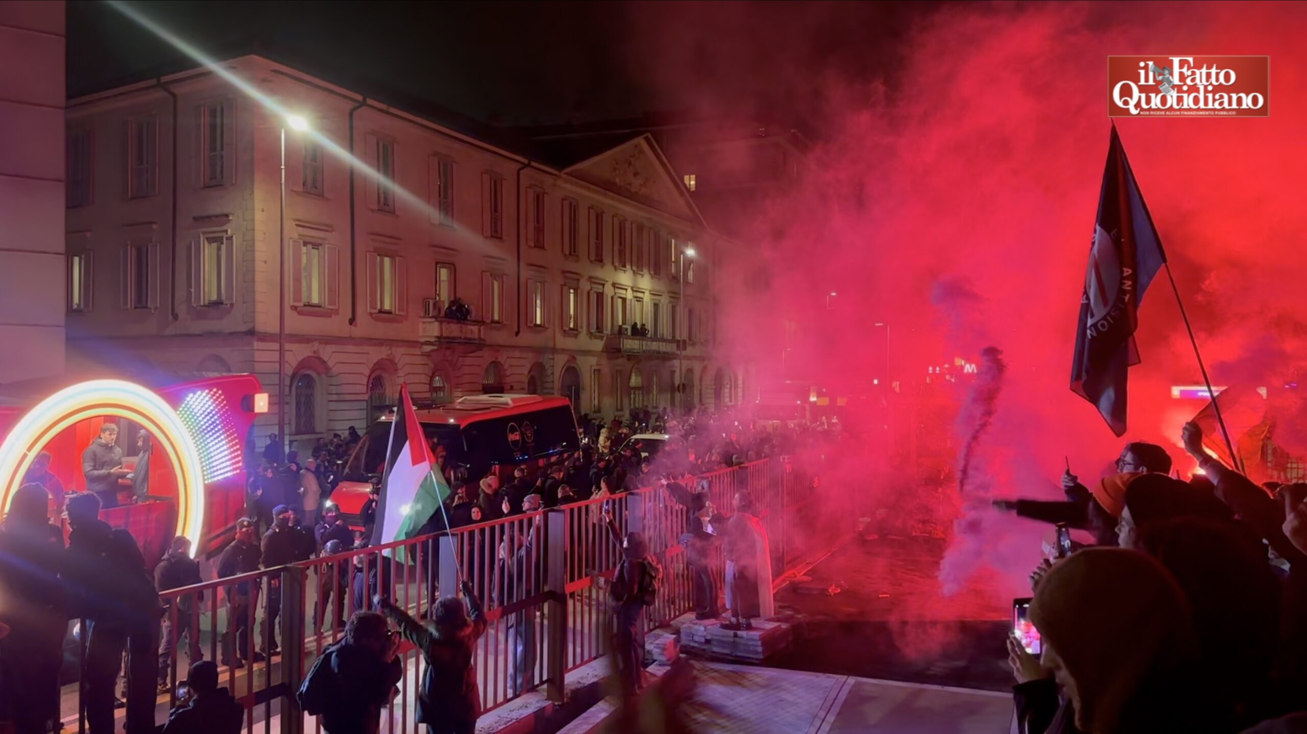 Protesta pro Palestina al passaggio della fiaccola olimpica a Milano