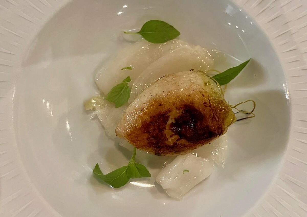 A rubare la scena ai piatti precedenti, risultando ai miei occhi il più riuscito della serata, è stato invece il Sedano di Verona arrosto: un piatto equilibrato e finalmente riconoscibile, capace di riconnettere i sensi alla memoria del gusto.