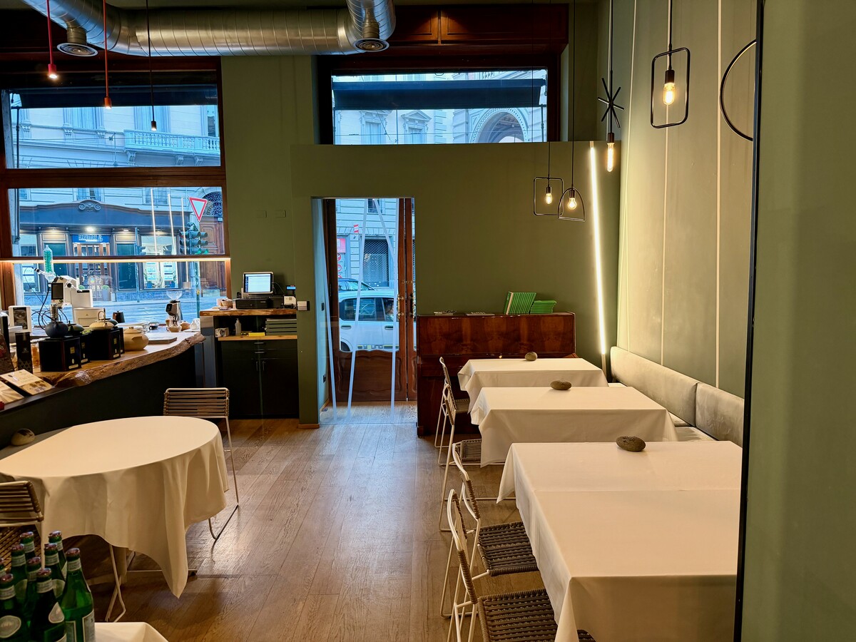 Anche l’esperienza in sala ha riservato qualche ombra, a partire da un servizio che è parso vittima di un ritmo decisamente troppo incalzante e, a tratti, quasi frettoloso. Né sono mancate alcune sviste formali non proprio in linea con un locale che continua ad essere considerato il tempio della cucina vegetale torinese: come nel caso del Sedano di Verona, che ha visto le posate servite solo quando il piatto era già in tavola; o sulla bottiglia di vino che, scelta da una carta contenuta ma frutto di una selezione attenta, non mi è stata affatto presentata prima dell’apertura, come invece andrebbe fatto. E se il locale, con il suo design essenziale fatto di ferro e legno, comunica un’innegabile solennità, l’impressione ultima resta – anche in questo caso coerentemente con il probabile concetto di fondo con cui questo spazio è stato concepito – quella di aver varcato la soglia di uno straordinario laboratorio di ricerca piuttosto che di un luogo dedicato al piacere conviviale. Per quanto lo sforzo di trasfigurazione del vegetale sia ammirevole, c’è il rischio concreto che la materia finisca per perdere la propria sostanza, cedendo il passo a una sperimentazione che sembra voler parlare con insistenza più alla mente che ai sensi. Almeno ai miei, forse non così raffinati.